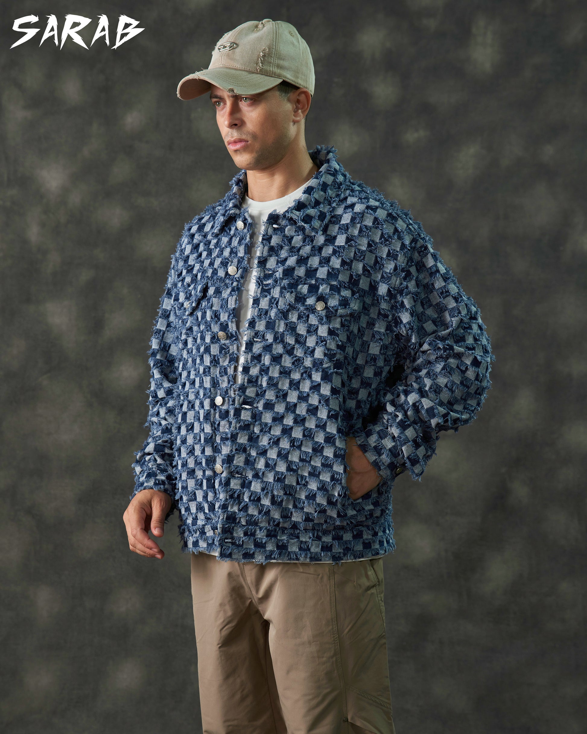 A modern denim jacket featuring a unique textured finish and a relaxed fit. Designed for effortless style, perfect for casual and streetwear looks