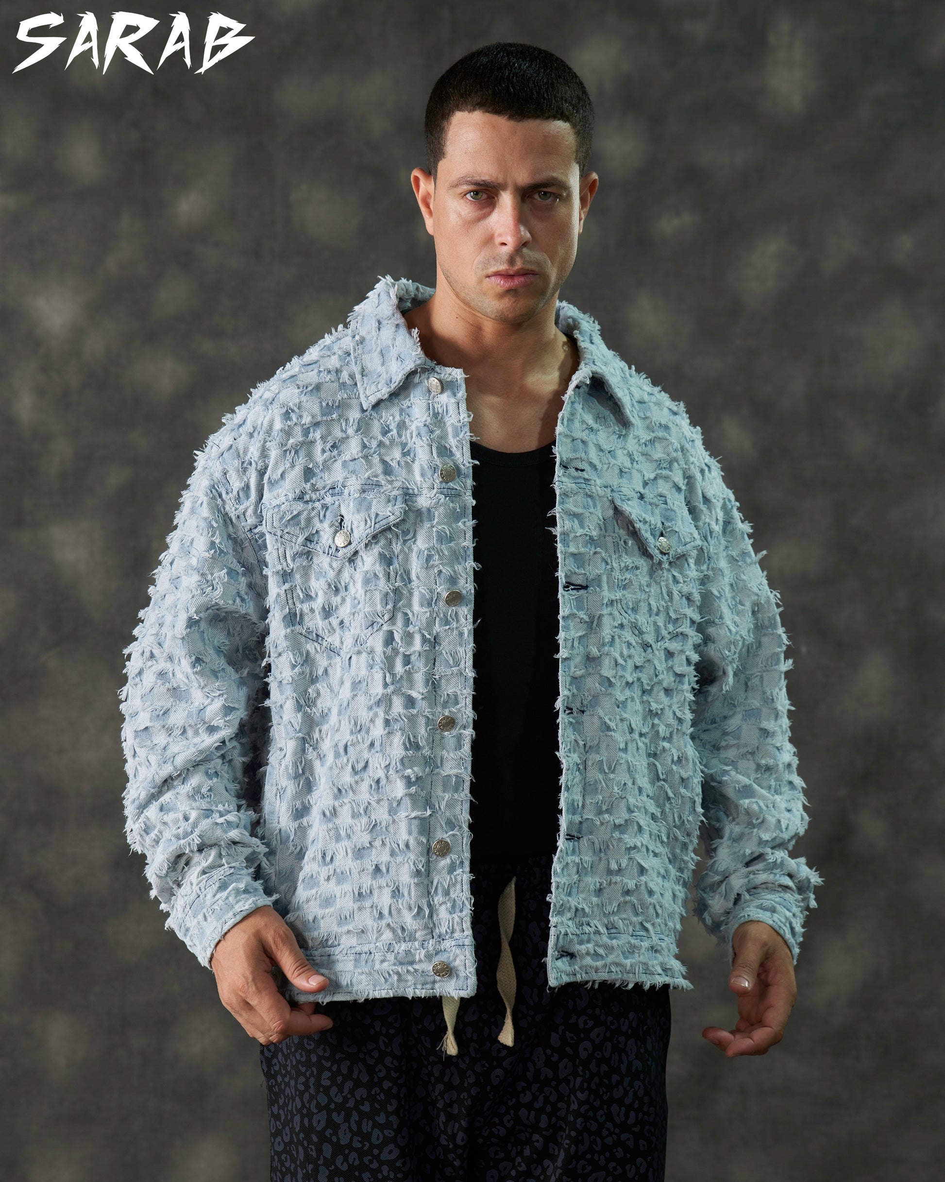 A modern denim jacket featuring a unique textured finish and a relaxed fit. Designed for effortless style, perfect for casual and streetwear looks